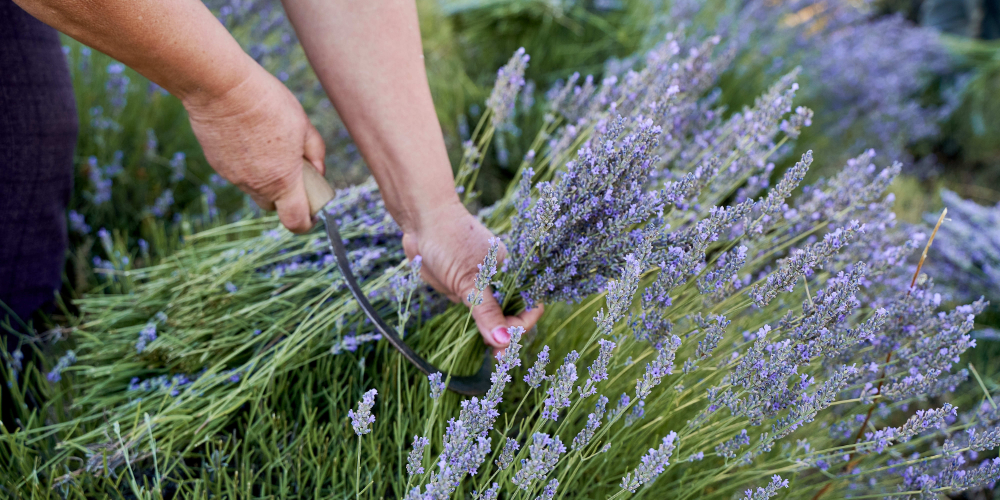 Na Shefqetově farmě pomáhá každý, od mladých po staré. Společně jedeme po kamenité cestě směrem k levandulovému poli, asi 20 minut od Gramshe. Jakmile tam dorazíme, začnou pracovníci rovnou se sklizní levandule. Všichni jsou rychlí a zkušení, práce jim jde krásně od ruky. Během chvilky jsou sklizeny první keříky levandule. Také Shefqet o své práci vypráví s radostí.