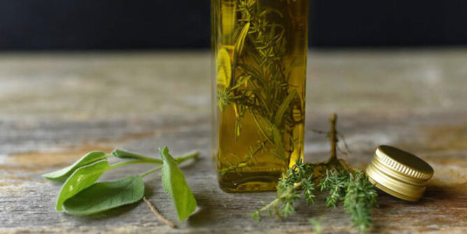 Pro svůj vlastní bylinkový olej použijte bylinky dle chuti, naplňte do sklenic a zalijte olivovým, řepkovým nebo slunečnicovým olejem. Po asi dvou týdnech můžete bylinky odstranit – vůně v oleji zůstane.