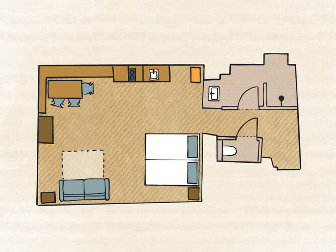 Dorli Damals empfängt bis zu 4 Personen mit einem überaus charmanten, historischen Einrichtungsstil: Der gelbe Kachelofen und die zahlreichen Originalmöbel und -türen werden dir dabei besonders auffallen. Erhaltene Altholzböden sowie der "Spion" mit Blick auf den Dreifaltigkeitsplatz sind weitere Besonderheiten dieser Wohnung.  Du wirst während deines Aufenthalts viele authentische Geschichten über das Leben der letzten Hausbewohner:innen erfahren. Aufgrund des Altholzbodens empfehlen wir Hausschuhe mitzubringen.