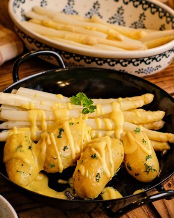 Spargel mit Petersilienerdäpfeln und Sauce Hollandaise