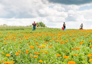 Dass Enkelsohn Andreas das Geheimnis der Ringelblume in dritter Generation hütet und mit SONNENTOR eine Zukunft in der Landwirtschaft sieht, freut Oma Zach besonders. Vor allem, weil der Kräuteranbau gerade zu Beginn nicht einfach war. Aber Oma Zach ließ sich nicht beirren, war sie doch nach dem Besuch eines Vortrags der Kräuterkundigen Maria Treben voller Tatendrang. Sie begann mit Schafgarben und Weidenröschen, sammelte, verpackte und verschickte. Erst als sie damit ein wenig zum Haushaltseinkommen beitrug, ließ ihr Mann sie gewähren.
